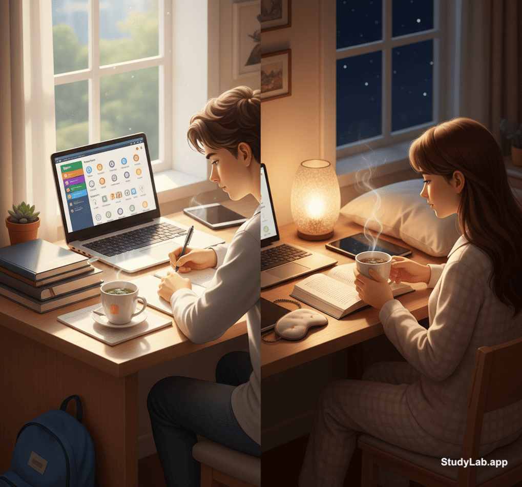 Students using StudyLab's quiz generation tools report that their practice sessions feel more productive and less frustrating when they prioritize sleep. The active recall method works best when your working memory is functioning optimally—which only happens when you're well-rested.